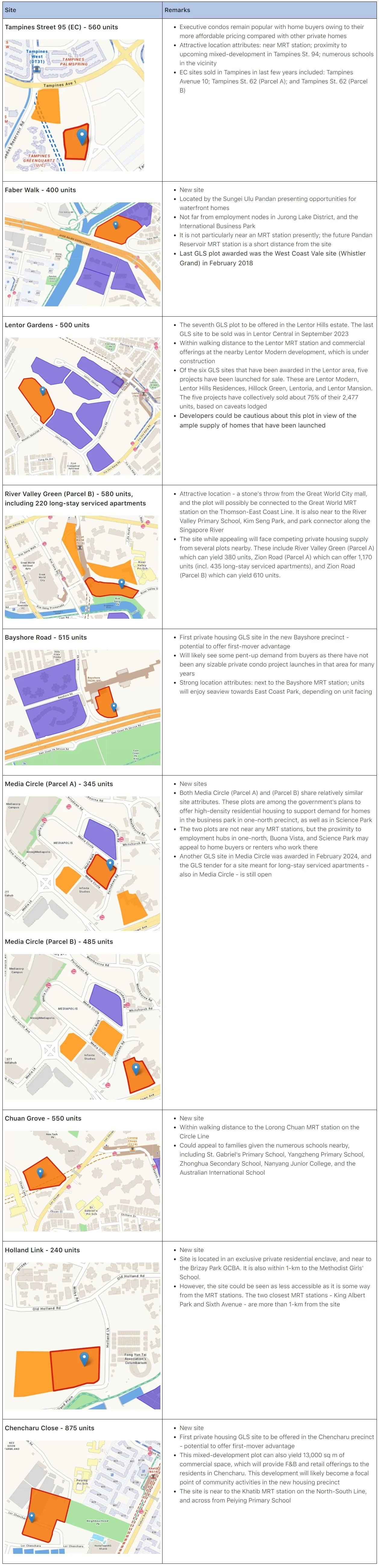 "The latest GLS slate in 2H 2024 presents a good selection of sites in a variety of locations, including 10 plots which are newly-added. The newly-added Confirmed List sites are in Faber Walk, Media Circle Parcels A and B, Chuan Grove, Holland Link, and Chencharu Close. Meanwhile, new on the Reserve List are sites in Marina Gardens Lane, Woodlands Drive 17 (EC), Holland Plain, and River Valley Green (Parcel C).